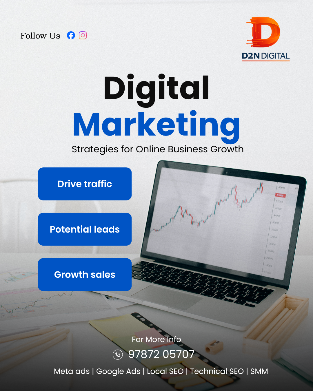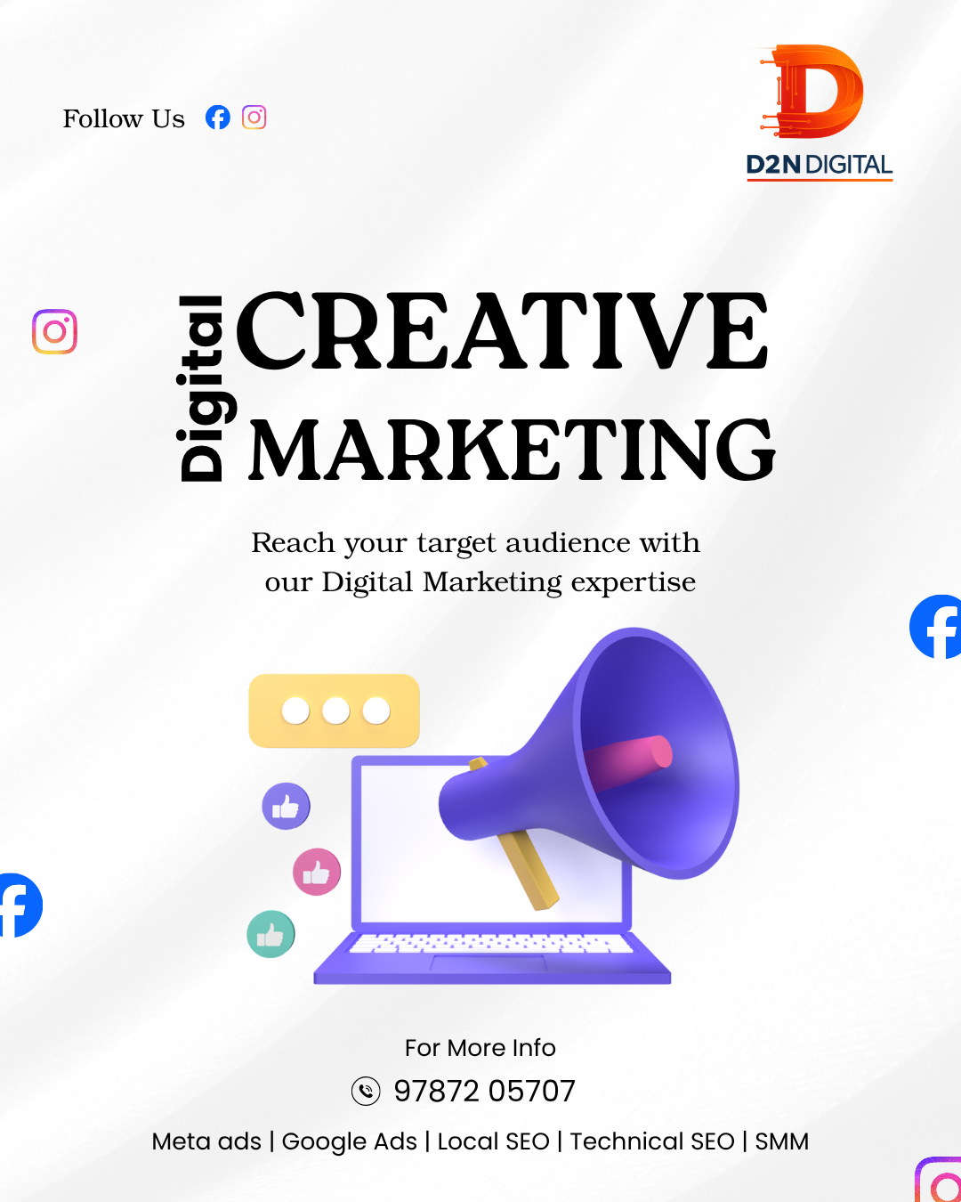 D2N Digital is a trusted advertising agency and digital marketing agency helping businesses boost visibility with result-driven campaigns. Specializing in paid advertisement strategies, we deliver targeted solutions through Google Ads, Facebook, and Instagram to maximize ROI. Our team focuses on enhancing local brand presence with SEO-optimized content, location-based targeting, and data-driven marketing. From lead generation to customer engagement, D2N Digital ensures your business stands out in the competitive digital space. Trusted by local businesses, we combine creativity and performance to achieve measurable success. Choose D2N Digital for impactful digital growth in your area.